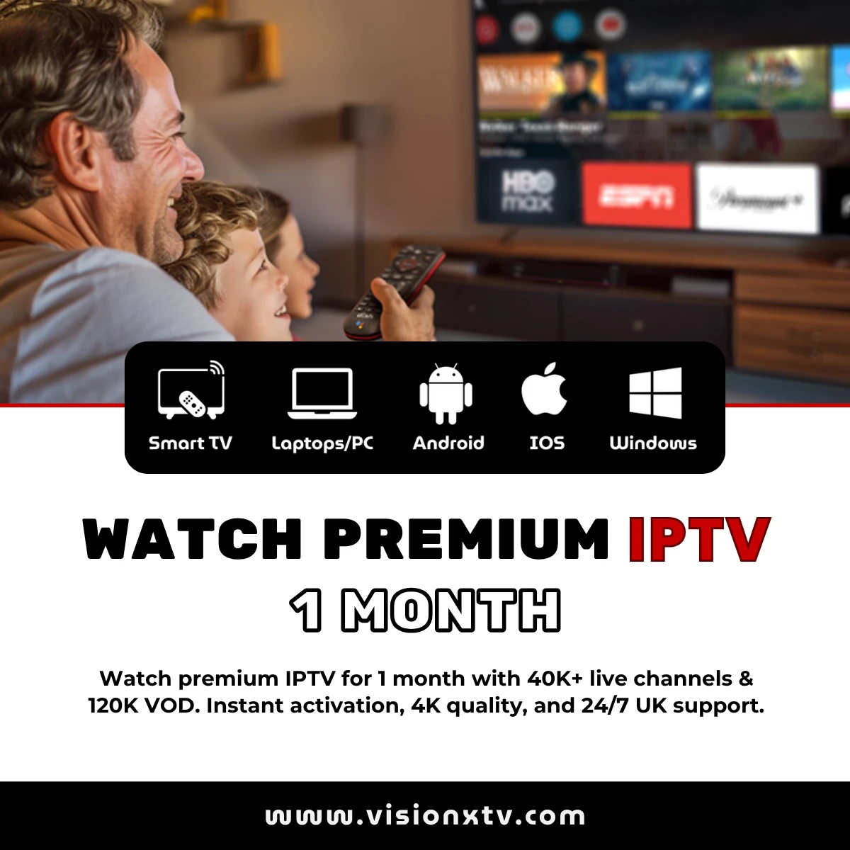 Premium IPTV Subscription 1 Month with VisionXTV | 4K Quality, Zero Buffering & 24/7 Support